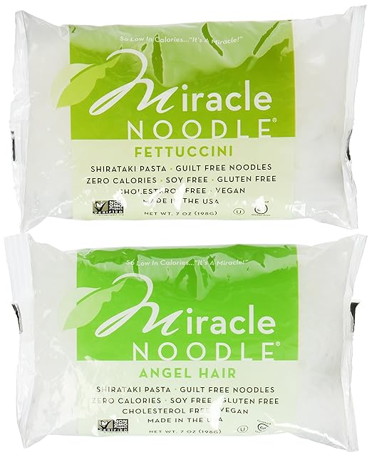 Miracle Noodle Shirataki Angel Hair and Fettuccine, 6 packs for $18.37 on Amazon